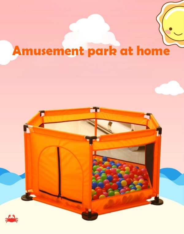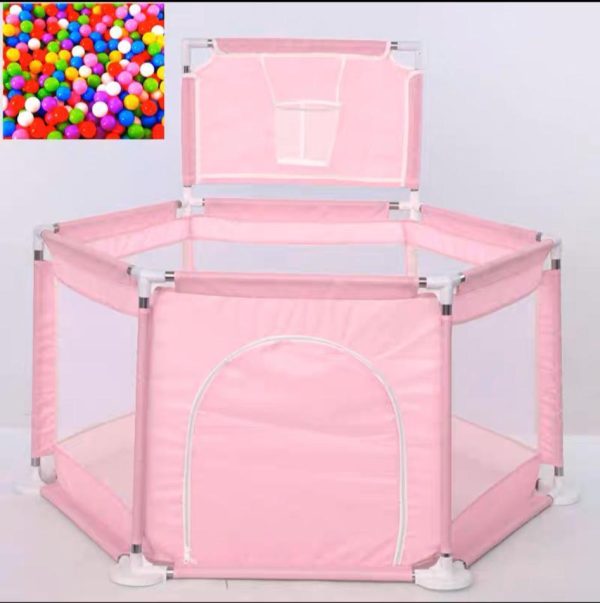 Realizat dintru cadru de aluminiu hexagonal, cu pereti din polyester, tarcul se poate achizitiona cu sau fara bilele colorate din plastic.