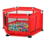 Fabricat din materiale de înaltă calitate și non-toxice, tarcul de joacă roșu este durabil, ușor de montat și de curățat, oferind astfel o soluție practică și igienică pentru spațiul de joacă al copilului tău.