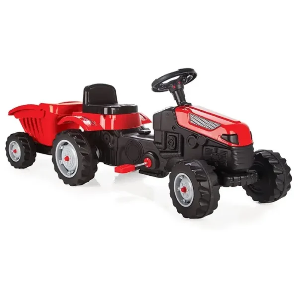Cu Tractorul cu Pedale și Remorcă Pilsan, copilul tău intră în rolul unui adevărat fermier, pregătit să transporte „recolta” dintr-un capăt în altul al curții.
