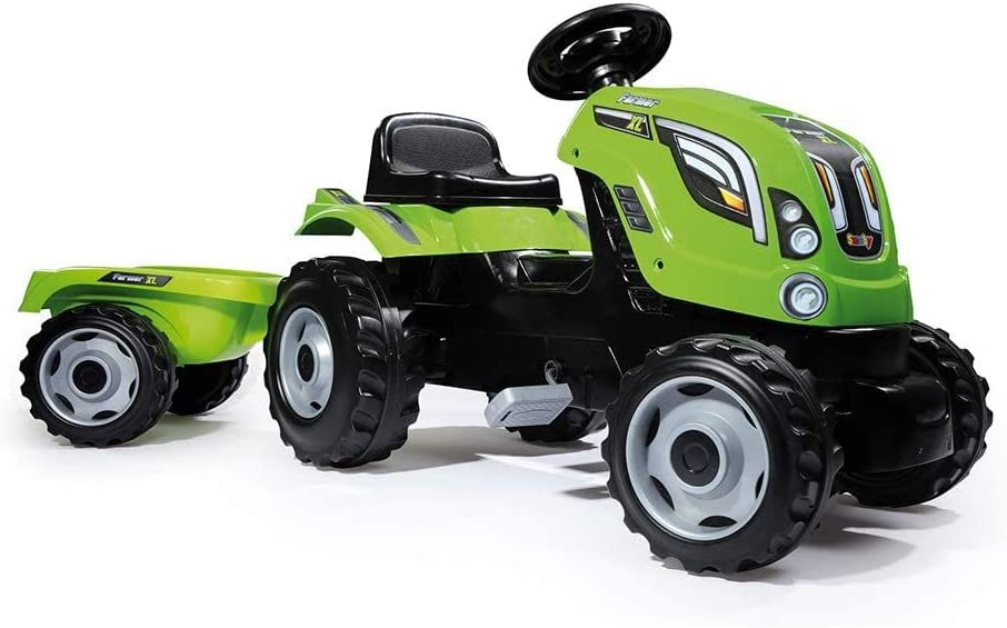 Majoritatea copiilor își imaginează cum ar fi să fii fermier, iar copilul tău poate afla când ii oferi acest Tractor Fermier cu Pedale si Remorca pentru Copii!