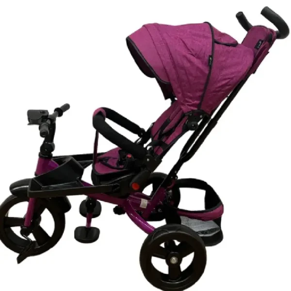 Alegeti Tricicleta Evolutiva cu Scaun Reversibil Mov pentru plimbari sigure si confortabile pentru copii!