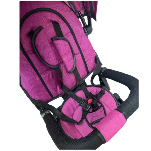 - Siguranță: Are centuri de siguranță și caracteristici de protecție pentru a menține copilul în siguranță în timpul plimbărilor.