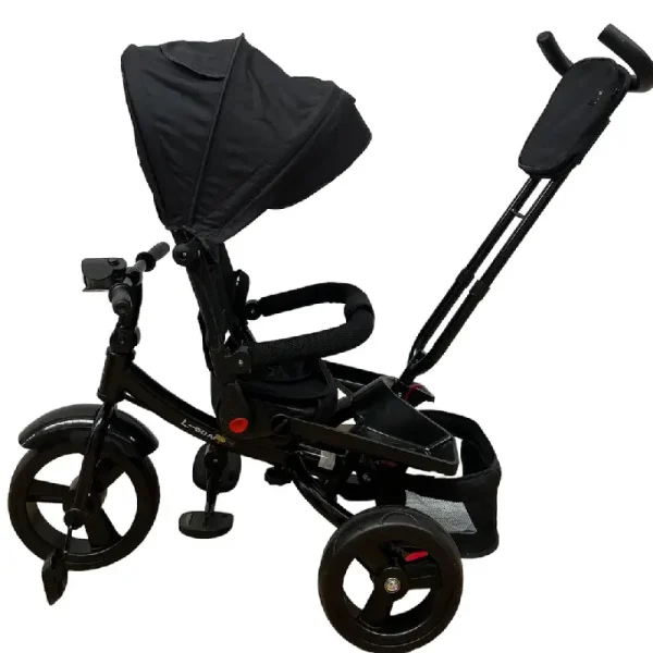 Alegeti Tricicleta Evolutiva cu Scaun Reversibil Negru pentru plimbari sigure si confortabile pentru copii!