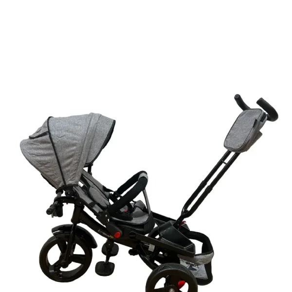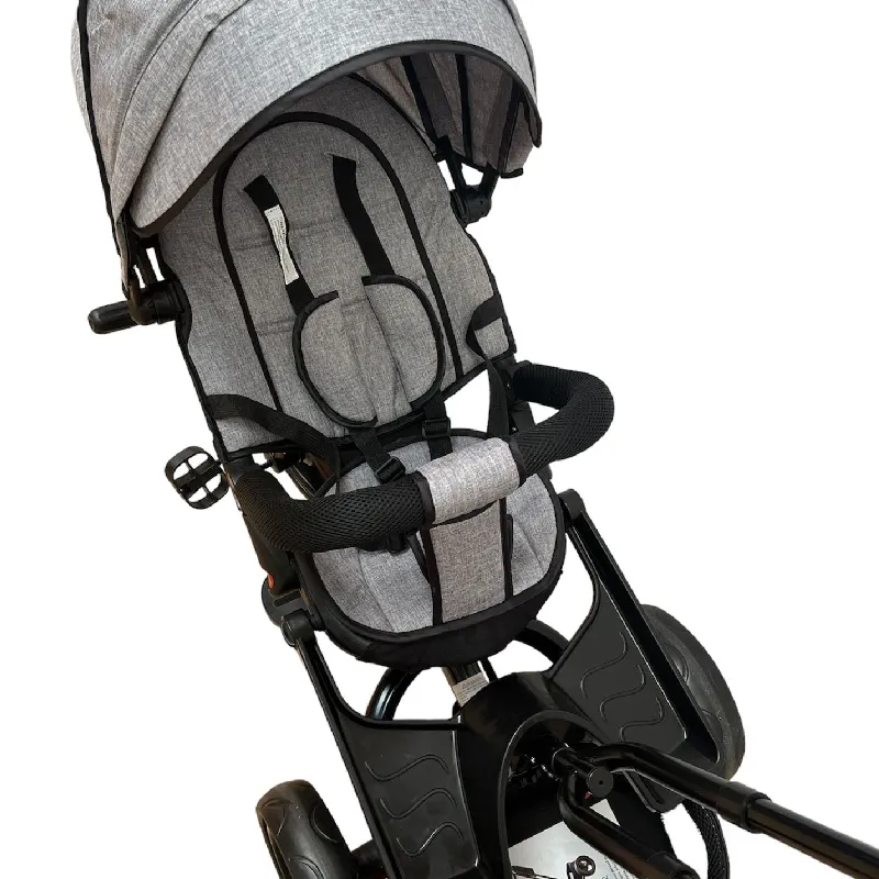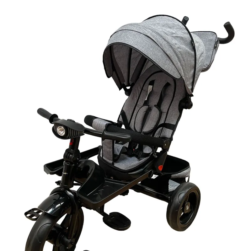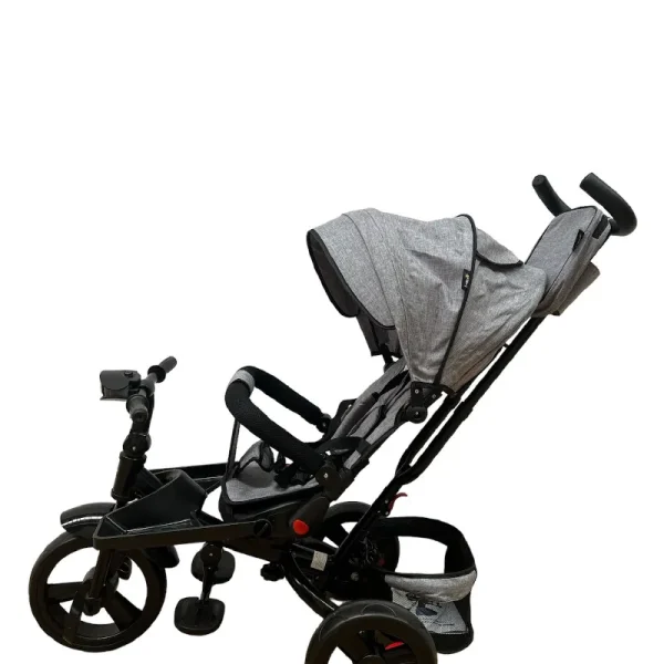 Alegeti Tricicleta Evolutiva Pliabila cu Pozitie de Somn Scaun Reversibil Gri pentru plimbari sigure si confortabile pentru copii!