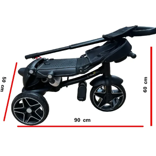 Designul modern și caracteristicile avansate fac din această tricicletă alegerea perfectă pentru părinții activi și copiii lor.