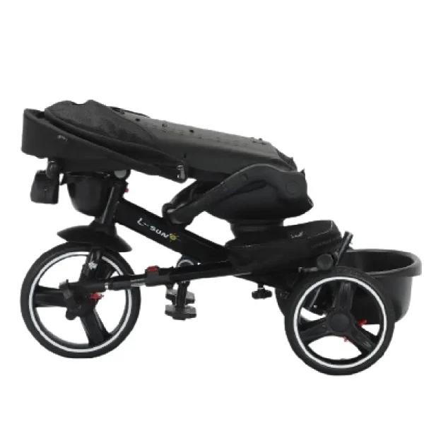 Designul modern și caracteristicile avansate fac din această tricicletă alegerea perfectă pentru părinții activi și copiii lor.