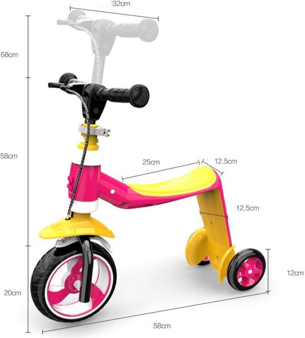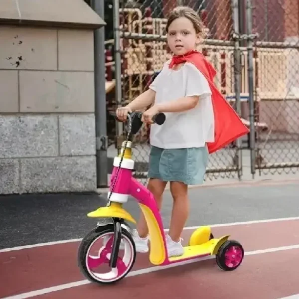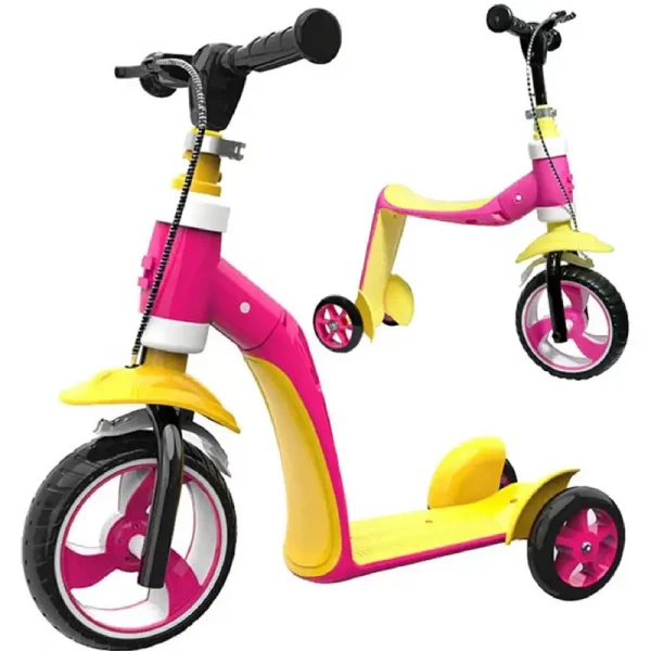 Trotineta Convertibila 2in1 Ride-On Roz pentru Copii – Aventură Pe Trei Roți pentru Fetițe!