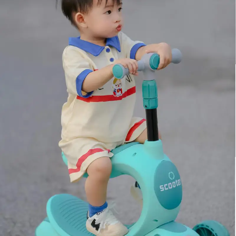 Descoperă combinația perfectă de stil, confort și distracție cu Trotineta Reglabila cu 3 Roti si Scaunel Bleu!