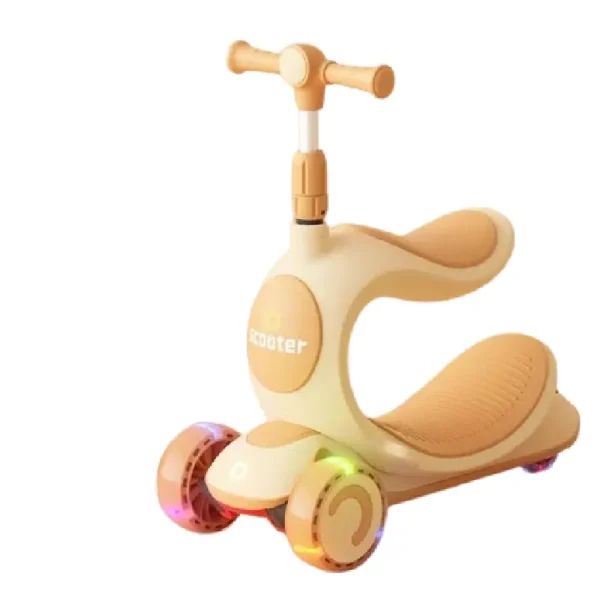 Cu un design atractiv în culoarea galben, trotineta cu 3 roti din silicon,are si un scaunel care este detasabil.