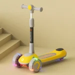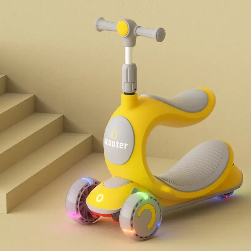 Descoperă combinația perfectă de stil, confort și distracție cu Trotineta Reglabila cu 3 Roti si Scaunel Galbena!
