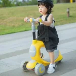 Cumpără acum și oferă-i copilului tău o modalitate distractivă și sănătoasă de a se deplasa cu Trotineta Reglabila cu 3 Roti si Scaunel Galbena!
