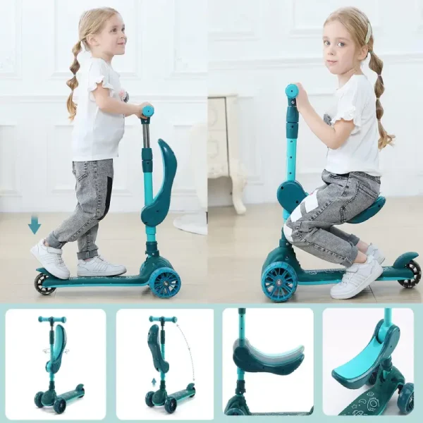 Caracteristici Trotinetă Verde Reglabila 2 în 1 pentru Copii: