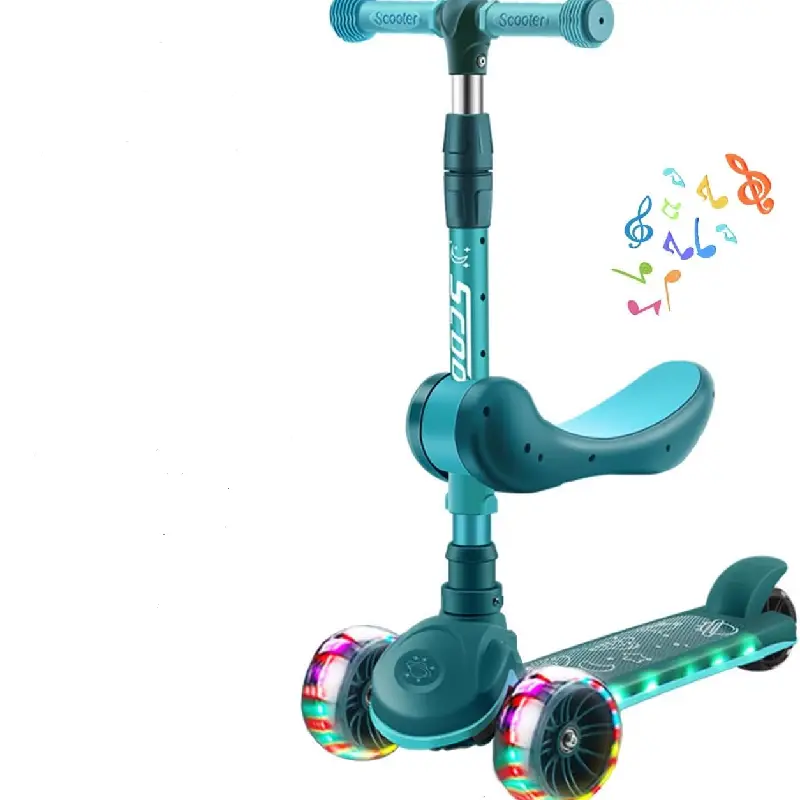 Trotinetă Verde Reglabila 2 în 1 pentru Copii– Pliabilă, cu Lumină LED și Muzică, Culoare Verde Elegant!