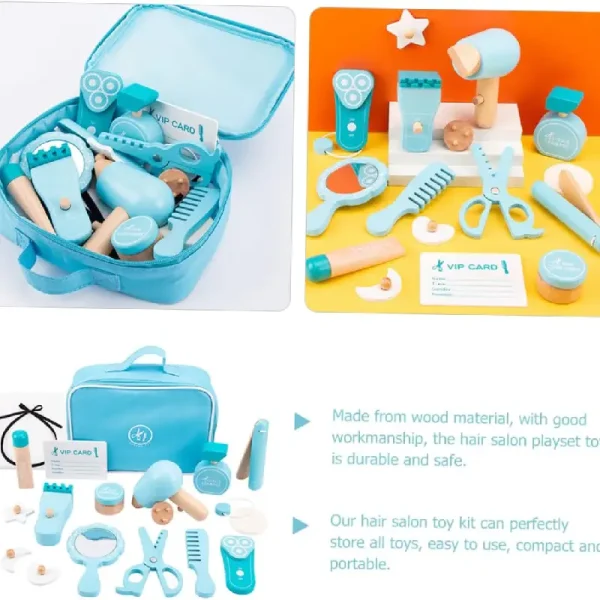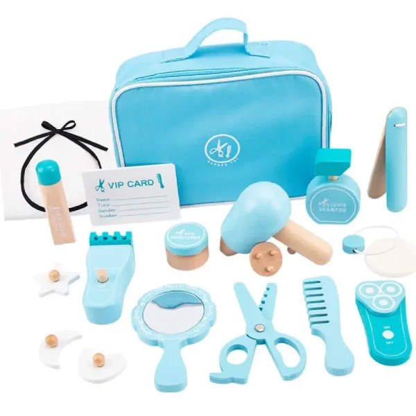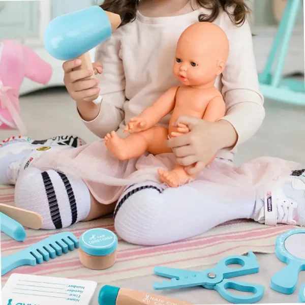 Trusa Coafat Jucarie de Rol din Lemn include: