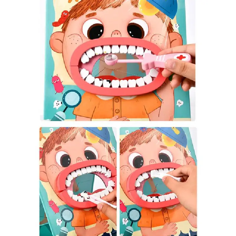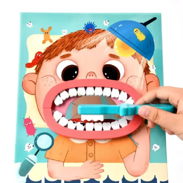 - pot simula consulturi stomatologice, examinând și îngrijind dinții și gingiile jucăriei sau ale altor păpuși și prieteni de pluș. Aceasta stimulează creativitatea și jocul de rol