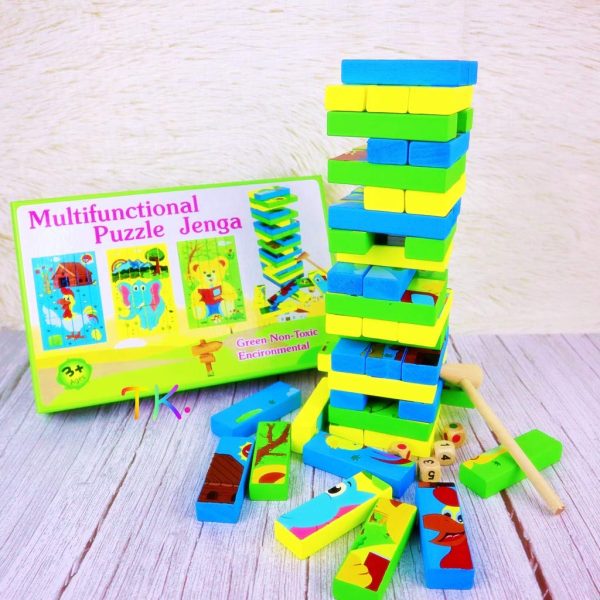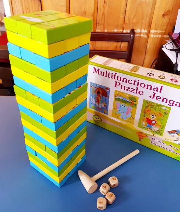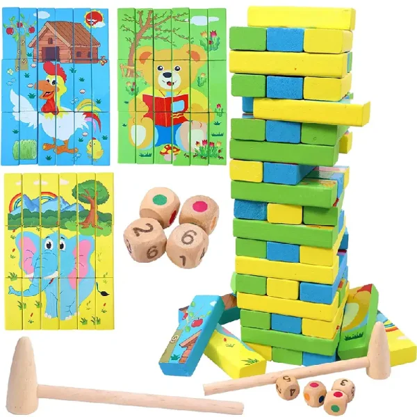 Turnul Instabil Cuburi Jenga Puzzle lemn este un joc fascinant,un joc de societate care dezvolta capacitatile motrice si de indemanare ale copiilor.