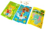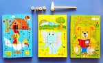 Piesele colorate sunt realizate din lemn,care puse in ordinea corecta,formeaza trei imagini,sau aranjate in alt mod,se poate construi un turn.