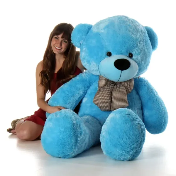 Nu lăsați această oportunitate să vă scape! Cumpărați acum Urs Bleu Moale si Pufos cu Fundita 140cm și aduceți un zâmbet pe chipul celor dragi!