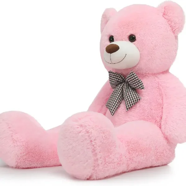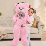 Descoperiți bucuria îmbrățișărilor cu Urs Roz Moale si Pufos cu Fundita 140cm !