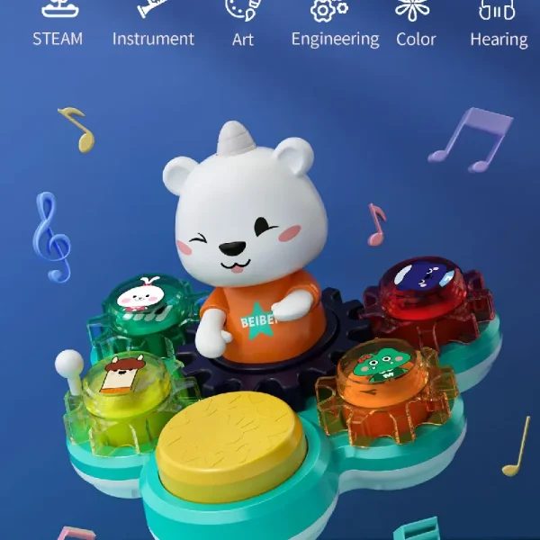 Copiii își pot crea propriile melodii și compoziții ridicând și coborând capacele. Ritmul și viteza muzicii pot fi mărite sau micșorate prin rotirea angrenajelor de legătură rotative. Muzica se aude mai repede când roata se învârte mai repede. Capul ursuletului își schimbă culorile pe parcursul piesei în funcție de ritmul și stilul muzicii.